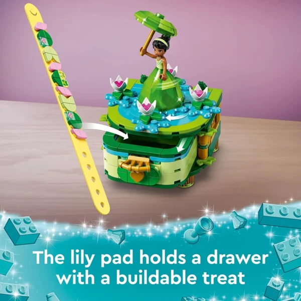 - Features 3 incredible jewelry box builds, 3 mini doll figures with diamond dresses inspired by Disney movies, and a LEGO DOTS bracelet!
