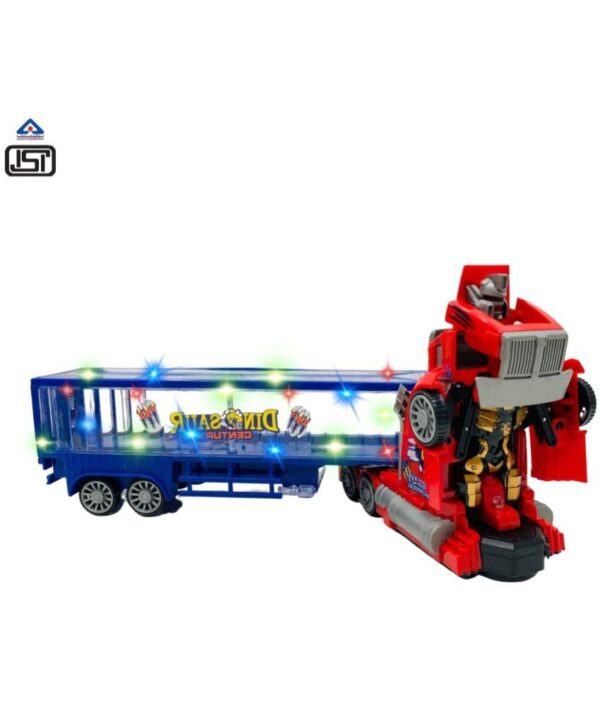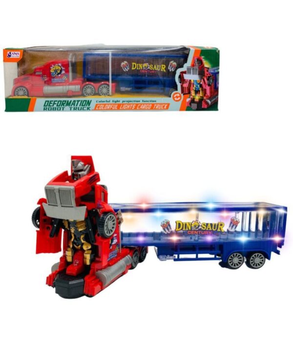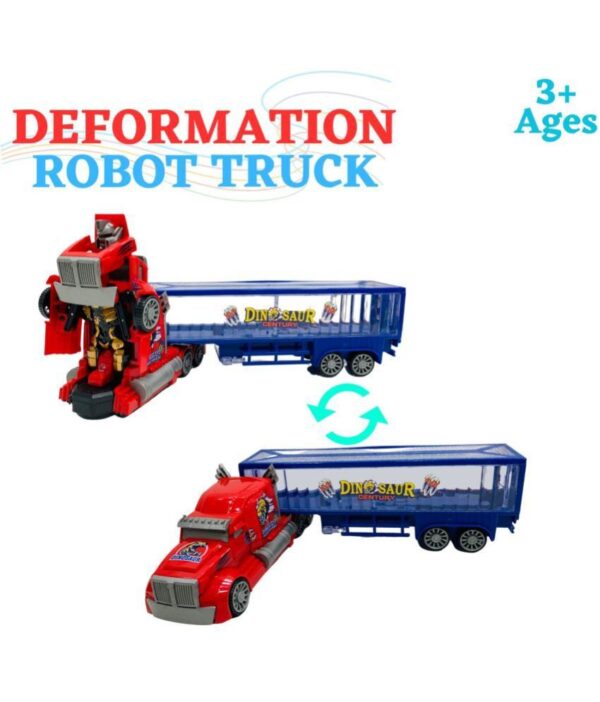2 in 1 Deforming Truck Robot Races Car Toy (Battery Operated) Toy with Colourful Lights and Music. The toy is battery-powered, but batteries are included. It is a two-in-one toy in which the truck transforms into a robot. Your child will enjoy playing with this toy for hours on end. The gadget creates incredible, brilliant lights while playing music. Content and colours may differ from those shown in the images. Ideal for giving as a gift. Recommended for children aged 3 and up.