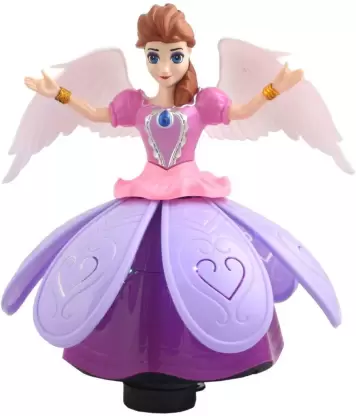 VSHINE Frozen Doll Dancing & Rotating Angel Girl – Dazzling Lights with Music – Princess Gift Toy (Blue)